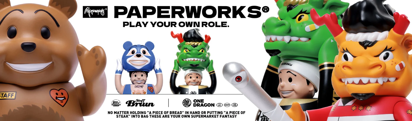 PAPERWORKS is a very distinctive cultural and creative company. They are good at expressing confidence and happiness through the design of toys. The first original sofubi art toy STAFF-BEN they launched is working in a magical SUPERMARKET FANTASY that brings all your ideas together in your shopping basket. Our master of disguise, STAFF-BEN. Get more fun with him!